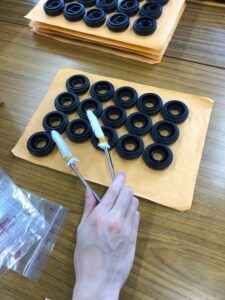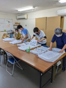 まずは準備から開始します 数を正確にします 見栄え良くするのも大切なこと 最後は検品・測量をして梱包します 職員・メンバーの9名程度の環境でおこなっています 組み立てる人、袋に入れる人が協力し合い、商品を完成させていきま […]